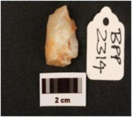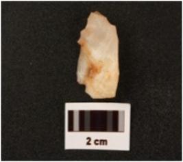 | Description / विवरण | Flake on quartz with use wear marks along cutting edges prepared platform cortex visible on surface. |