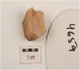 | Description / विवरण | Core made on chalcedony, three blade scars and flake scars on smooth surface. |