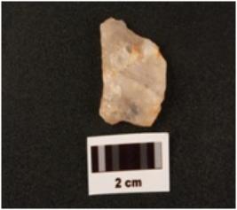 | Description / विवरण | Flake made on quartz with use wear marks along cutting edges prapared platform proninent bulb on ventex side smoth surface |