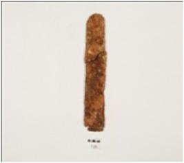 | Description / विवरण | Two pieces of an iron blade, with sharp working edge and chemically treated. |