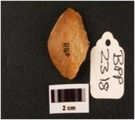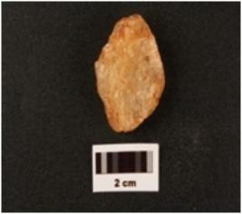 | Description / विवरण | Flake wade on quartz with use wear marks along cutting deges paepared platform flake scars on sorsal side diffused bulb on ventax side triangular in section |