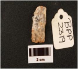 | Description / विवरण | Blode on quartz with use wear makes along cutting edges sidge on a dorsal side, and expariment bulb on nentrul |