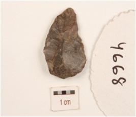 | Description / विवरण | Point made on end struck flake, diffused bulb on ventral surface, retouches along cutting edges, flake scars on dorsal surface pointed distal end. |