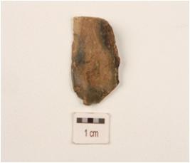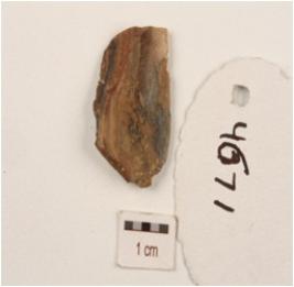 | Description / विवरण | Flake made on end struck chert, flake, positive bulb on ventral surface, flake scars on dorsal surface, use wear marks along cutting edges. |