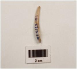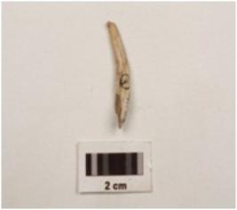 | Description / विवरण | A bone point with pointed ends, cracks on surface, smooth and brown in colour, slightly curved. |