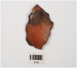 | Description / विवरण | End scraper made on chert stone with use wear marks on working edge, flake scars on dorsal and smooth ventral. |