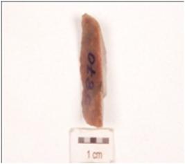 | Description / विवरण | Parallel sided blade, made on chert, unprepared platform, diffused bulb on ventral side, ridge on doral side, use-wear marks and retouched along cutting edge. |