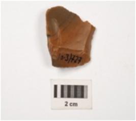 | Description / विवरण | Side scraper prepare on chert blade with single ridge and ripple marks on dorsal, prepared platform, partly chipped off bulb on ventral and use wear marks on cutting edges. |
