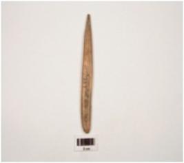 | Description / विवरण | A small bone point, conical in shape, pointed end, smooth surface and brown in colour. |