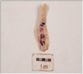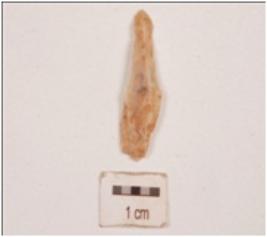 | Description / विवरण | Parallel sided blade made on chalcedony, unprepared platform, diffused bulb on ventral side, ridge on dorsal side, use-wear marks along cutting edges. |