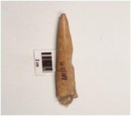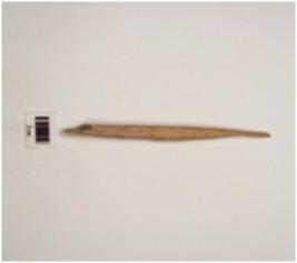 | Description / विवरण | A bone point with pointed end, glossy surface and brown in colour. |