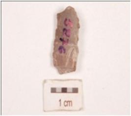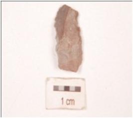 | Description / विवरण | Fragment of a parallel sided blade, made on chert, broken along both the ends, blade scars on dorsal side, bulb and platform absent, retouches and use-wear marks along cutting edges. |
