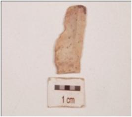 | Description / विवरण | Fragment of a parallel sided blade made on chert, both the ends are broken, ridge on dorsal side, bulb and platform absent, triangular in section, use-wear marks along the cutting edges. |