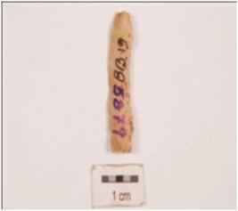 | Description / विवरण | Fragment of a parallel sided blade made on chert, prepared platform on proximal end, diffused bulb on ventral side, blade scars on dorsal side, use-wear marks along cutting edge, partly broken distal end. |