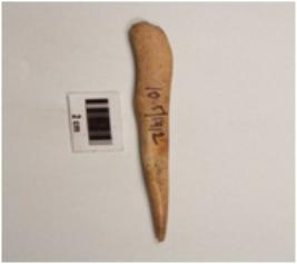 | Description / विवरण | A bone point with pointed end, surface is smooth and brown in colour. |