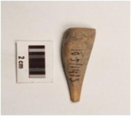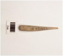 | Description / विवरण | A bone point with pointed end, surface is smooth and brown in colour. |