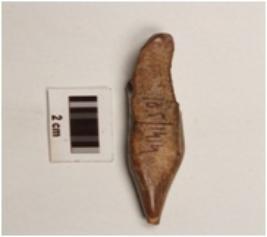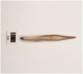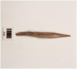 | Description / विवरण | A bone point end is pointed, smooth surface brown in colour and cracks marks visible uneven. |