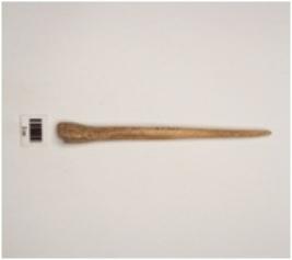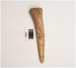 | Description / विवरण | A bone point, with and are broken, rough surface and brown in colour. |