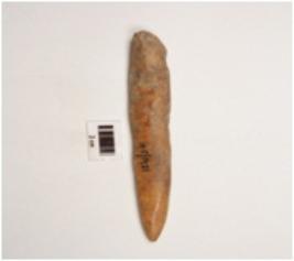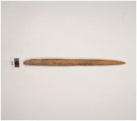 | Description / विवरण | A bone point with pointed end, polished surface, brown in colour and grooved on upper side. |