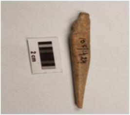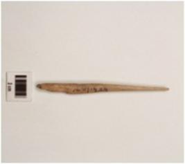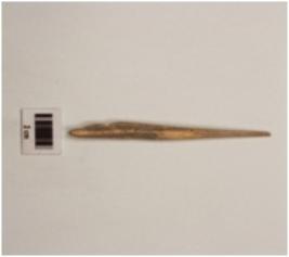 | Description / विवरण | A bone point with pointed ends, surface is smooth and brown in colour. |