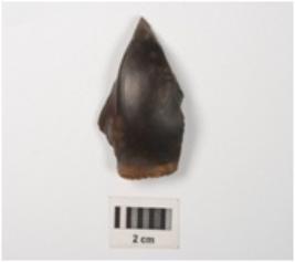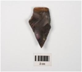 | Description / विवरण | Chert flake with flake scars and ripple marks on dorsal side, bulb on ventral side and irregular retouches on edges. |