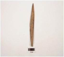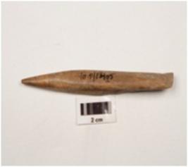 | Description / विवरण | A bone point with pointed ends, surface is smooth and brown in colour. |