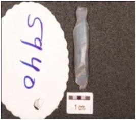 | Description / विवरण | Chalcedony blade made on flake, flake scars on the dorsal surface, transparent, smooth surface, wavy cutting edge. |