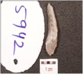 | Description / विवरण | Chalcedony lunet made on flake, flake scars on the dorsal side, transparent smooth surface, wavy cutting edges. |