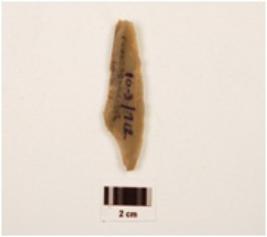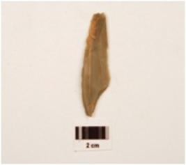 | Description / विवरण | A flake made on chert, flake scars on dorsal side, ventral side, bulb defused, triangular section, retouched cutting edge. |