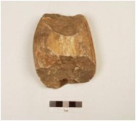 | Description / विवरण | Chopper made on quartzite pebble, one side flake scars, cortex visible, butt end on posterior end. |