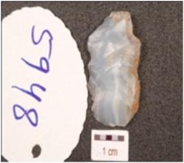 | Description / विवरण | Agate made on flake, flake scars on the dorsal side, prominent bulb on the ventral side, prepared platform on the proximal end, cortex on the surface, intact use wear marks on the cutting edges, smooth surface. |