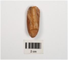 | Description / विवरण | End scraper, made on chert with ripple marks on both sides, absent bulb, conical in shape with blunt cutting edge. |