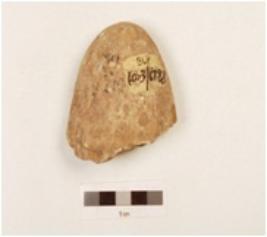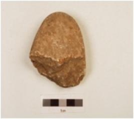 | Description / विवरण | Chopper made on quartzite pebble, one side flake scars, unifacial with flake scars, cortex visible on end, plano convex section. |