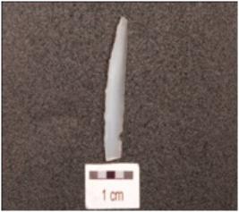 | Description / विवरण | Flake made on chalcedony, flake scars on the dorsal side, smooth surface. |