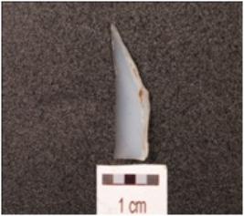 | Description / विवरण | Flake made on chalcedony, flake scars on the dorsal side, smooth, broken. |