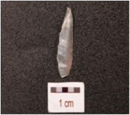 | Description / विवरण | Flake made on chalcedony, flake scars on the dorsal side, smooth surface, use wear marks along with the cutting edges. |