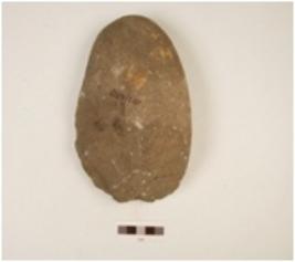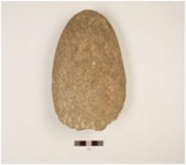 | Description / विवरण | A chopper made on quartzite pebble, flake scars on the interior end with wavy cutting edges, cortex on posterior end, convex in section. |
