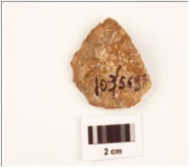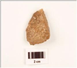 | Description / विवरण | A scarper of chert with one ridge, a intact flake form, working edge and smooth surface. |