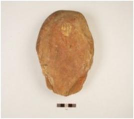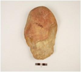 | Description / विवरण | A chopper made on quartzite pebble, flake scars on the interior end with wavy cutting edges, cortex on posterior end, convex in section. |