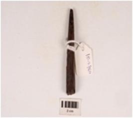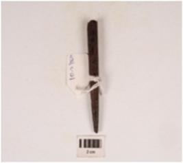 | Description / विवरण | A broken piece iron nail, head is broken, one end is pointed, crack on surface and square section. |