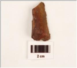 | Description / विवरण | Flake stone tool made by chert, one blade scars on the surface, difuse bulb on the ventral side, irregular shape. |