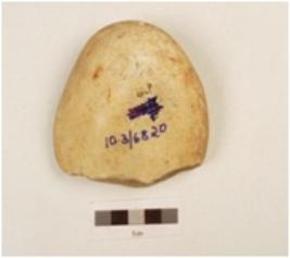 | Description / विवरण | A chopper made on quartzite pebble butt end, smooth surface, oval section, cortex is visible. |