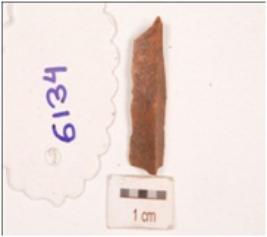 | Description / विवरण | Microlithic blade made on chert with a ridge on the dorsal side and use-ware marks along the cutting edge, broken at distal end, triangular in section. |