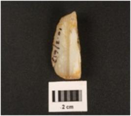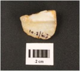 | Description / विवरण | A chalcedony flake, prepared platform and cortex visible. |
