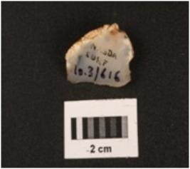 | Description / विवरण | Fragment of chalcedony blade with cortex on dorsal side and diffused bulb on ventral side. |