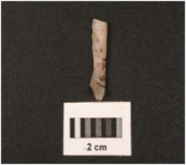 | Description / विवरण | Fragment of chalcedony blade with use-wear marks on cutting edges, mid ridge on dorsal, triangular in section and diffused bulb on ventral side. |