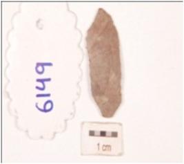 | Description / विवरण | Microlithic blade made on chert with a ridge on the dorsal surface, prepared platform and diffused bulb on the ventral side and irregular retouch along the cutting edges, slightly damaged. |