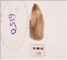 | Description / विवरण | Microlithic blade made on chert with a ridge on the doral surface, use ware marks along the cutting edges, tapering and pointed end. |