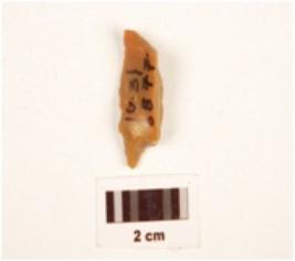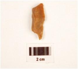 | Description / विवरण | A single ridged chalcedony blade made on end struck flake, retouched along the edges, flake scars on one side. |