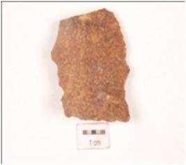| Description / विवरण | Side scraper prepared on an end-struck flake with prepared platform and diffused bulb on the ventral side, use-ware marks along the cutting edges, broken along the distal end. |